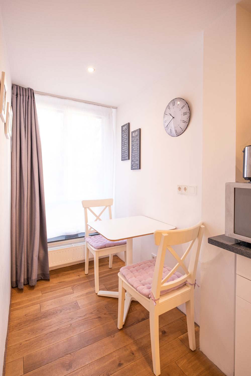Unsere Studio-Apartments befinden sich im Erdgeschoss, 1.OG und 2.OG in einem Nebengebäude (kein Aufzug).